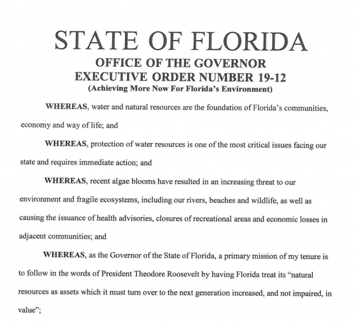 Less than 48 hours after being sworn in, Governor Ron DeSantis issued an Executive Order outlining his bold vision to achieve more now for Florida’s environment.
